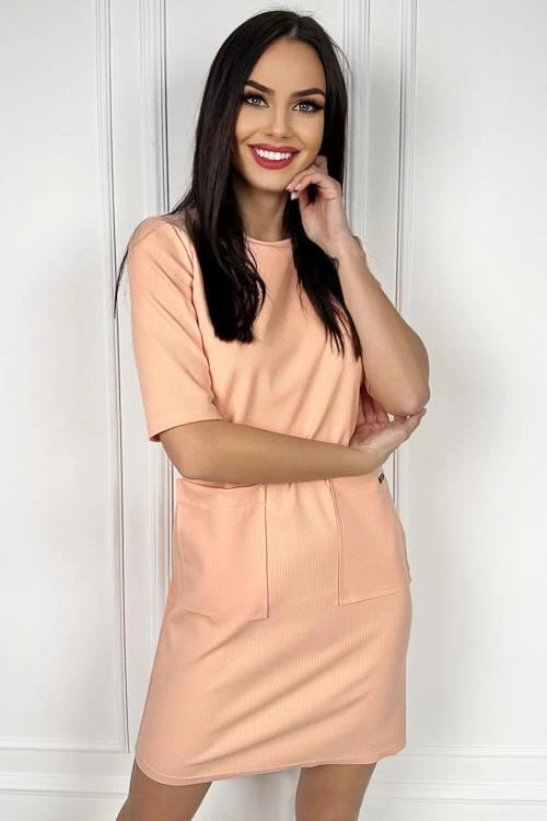 Ženska obleka s kratkimi rokavi in ​​žepi